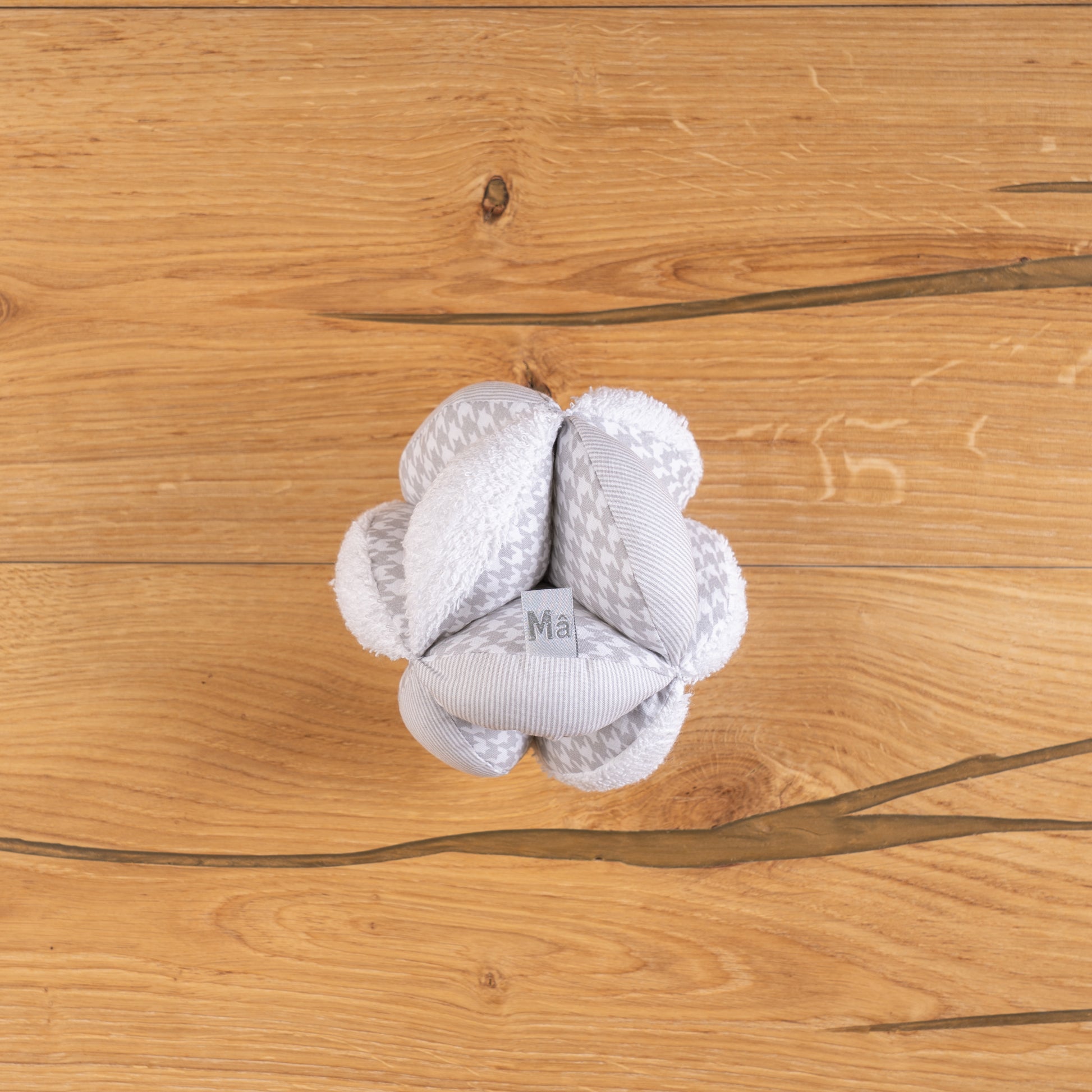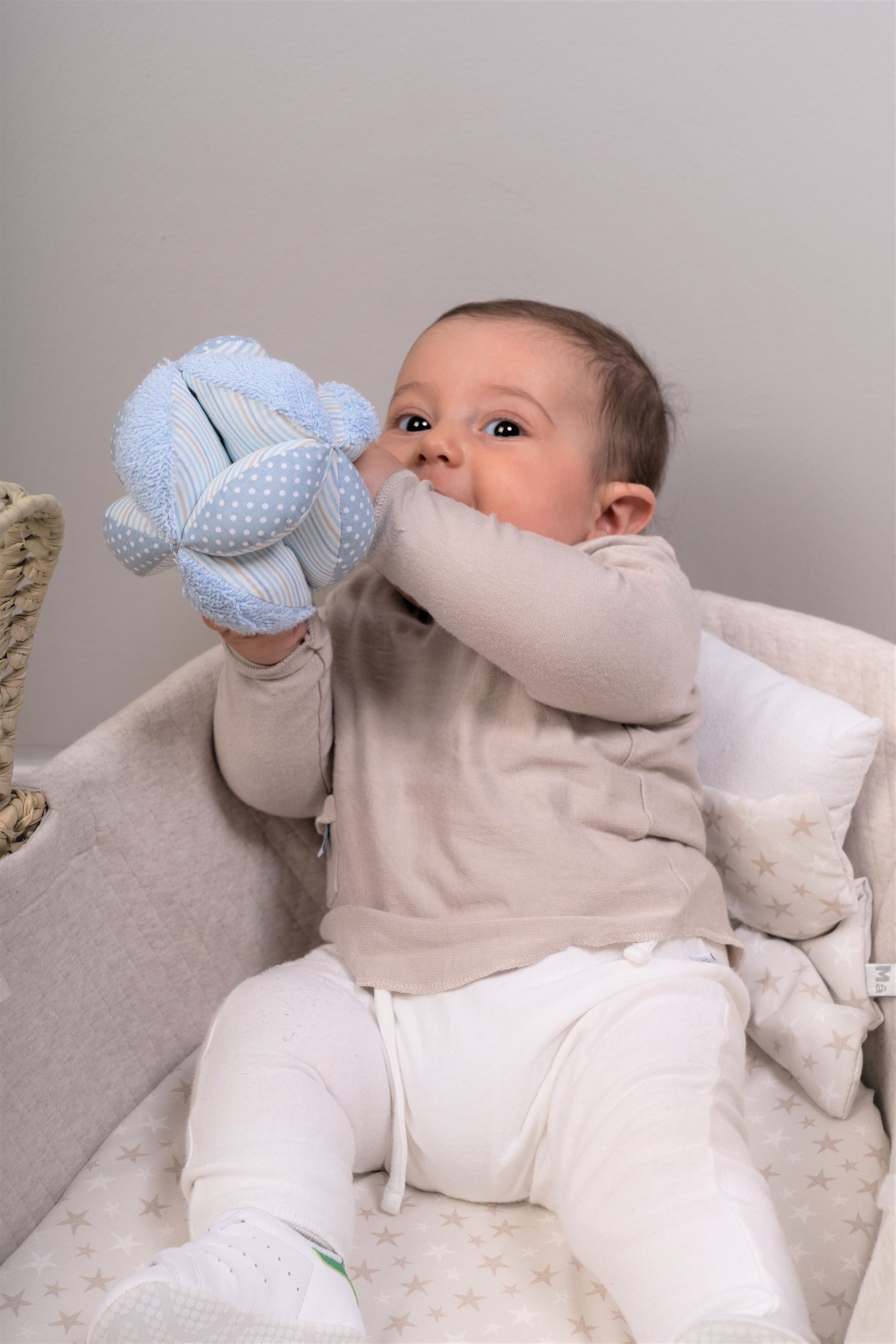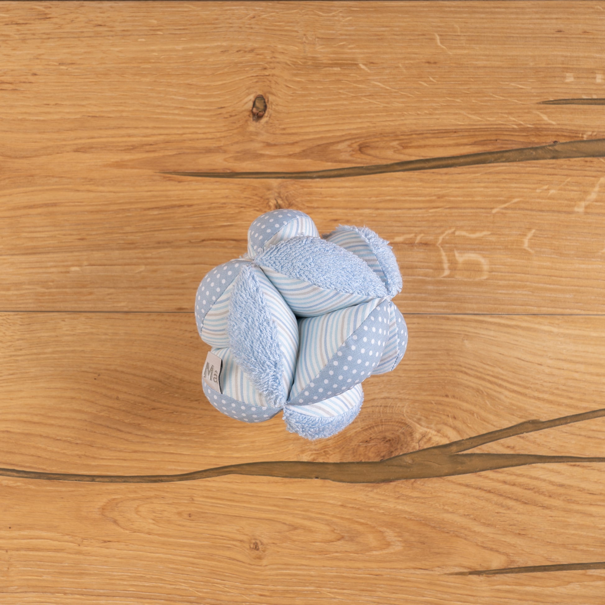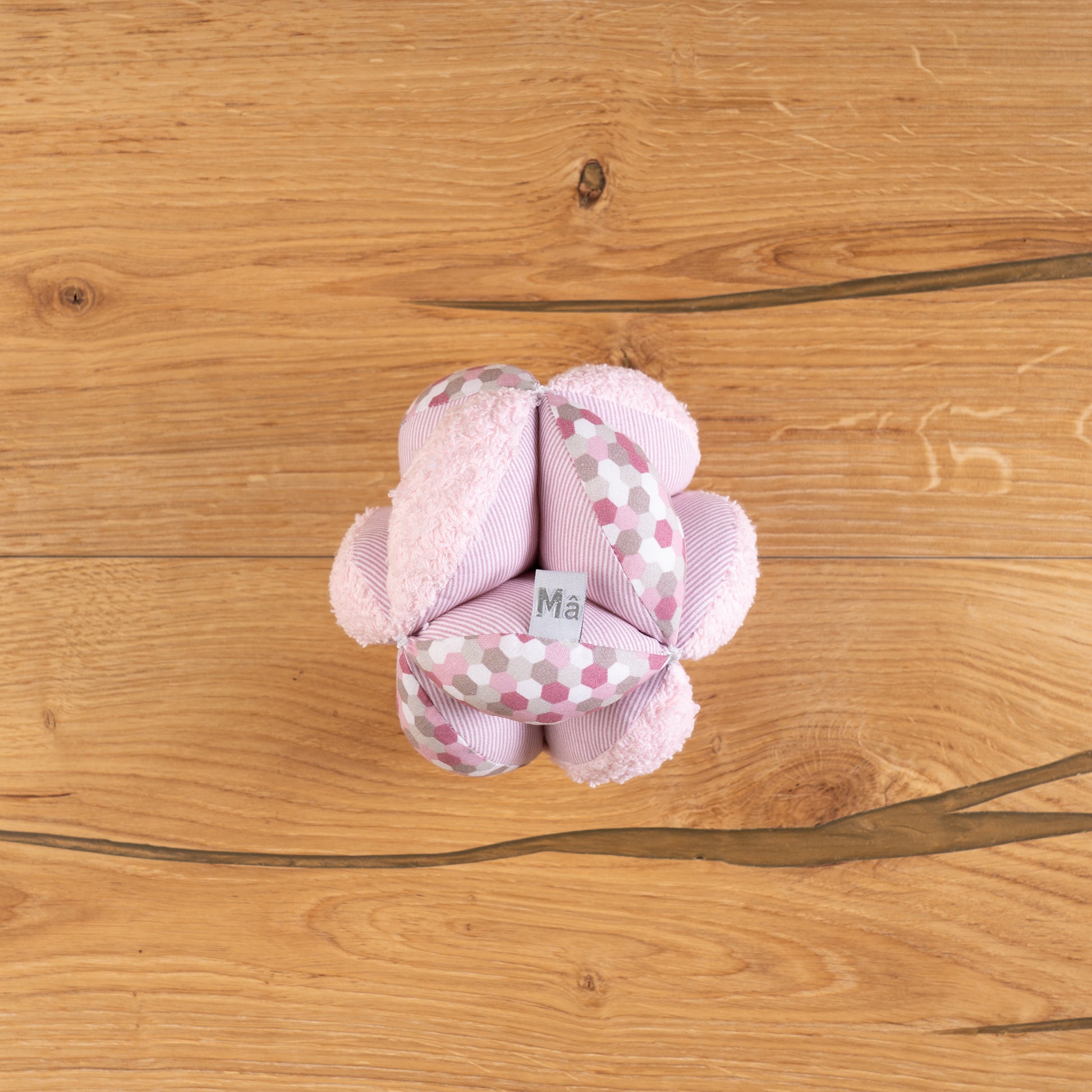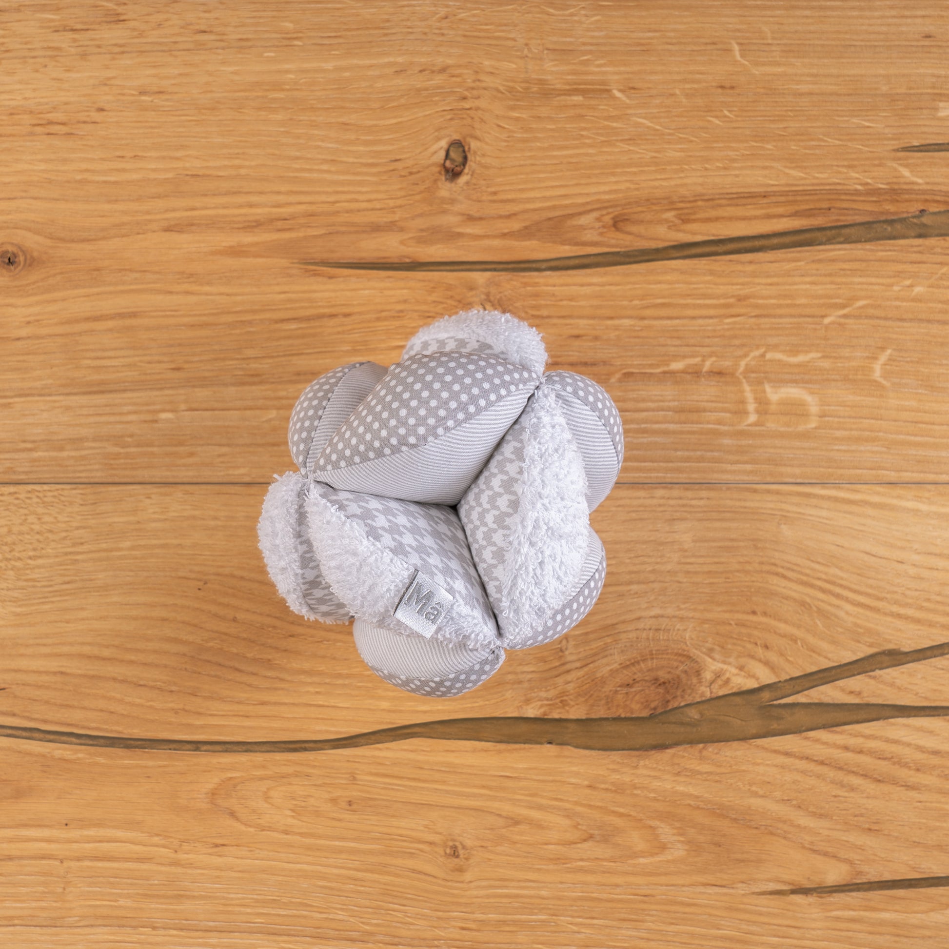 Dai 4-5 mesi, acquisendo la motricità del polso, il bimbo inizia da afferrare, portare a sé e lanciare gli oggetti e la palla, con i suoi spicchi morbidi e alternanza di pieni-vuoti è facilmente afferrabile e permette al bimbo di prendere coscienza di sé e del mondo esterno.