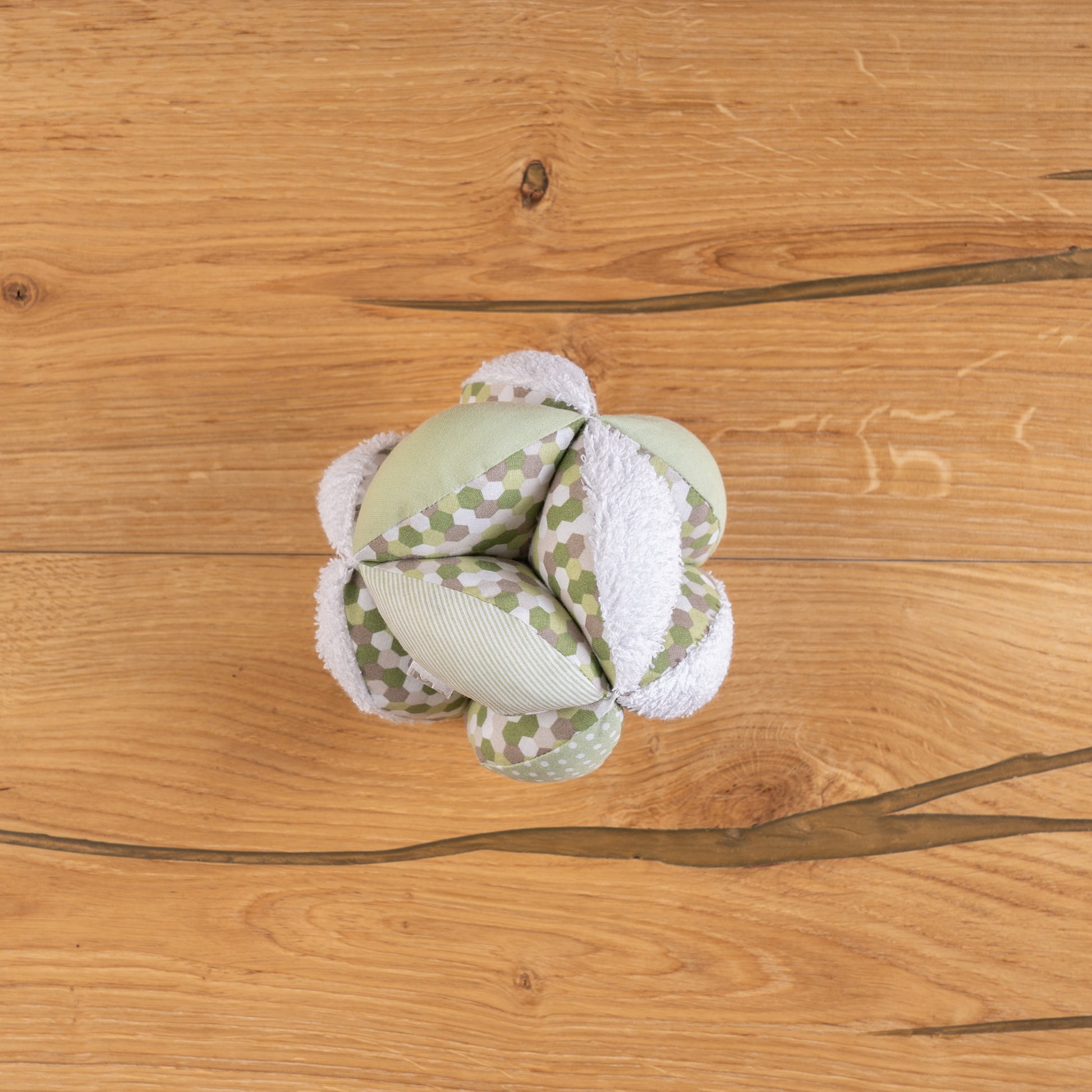 Costituita da 12 spicchi di tessuto imbottiti in morbida ovatta, la palla è un formidabile strumento per lo sviluppo e lo stimolo delle capacità cognitive e motorie del bambino.